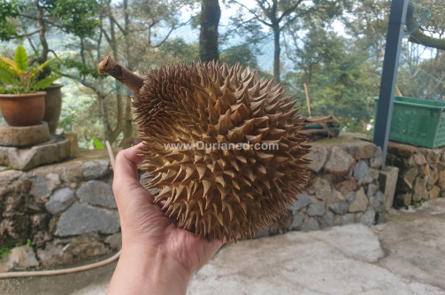 It has a short thick stem that is noticeably shorter and thicker than the average length found on common durians. Reminds you of stocky men.