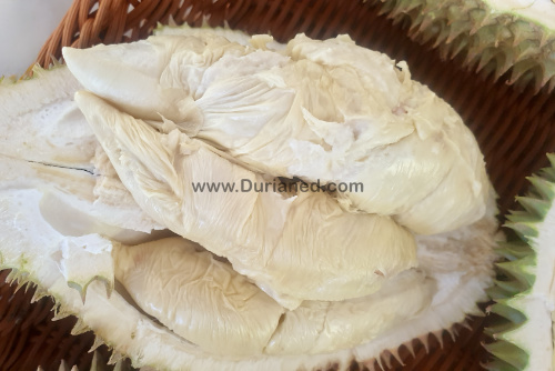 Very often when it comes to “white” durians, we can make out a light yellow hue. Or something like off-white and ivory such as black pearl.